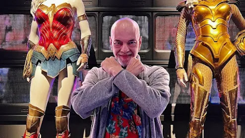 hier mit Cosplayers ("Wonder Girl" & "Terra") und beim